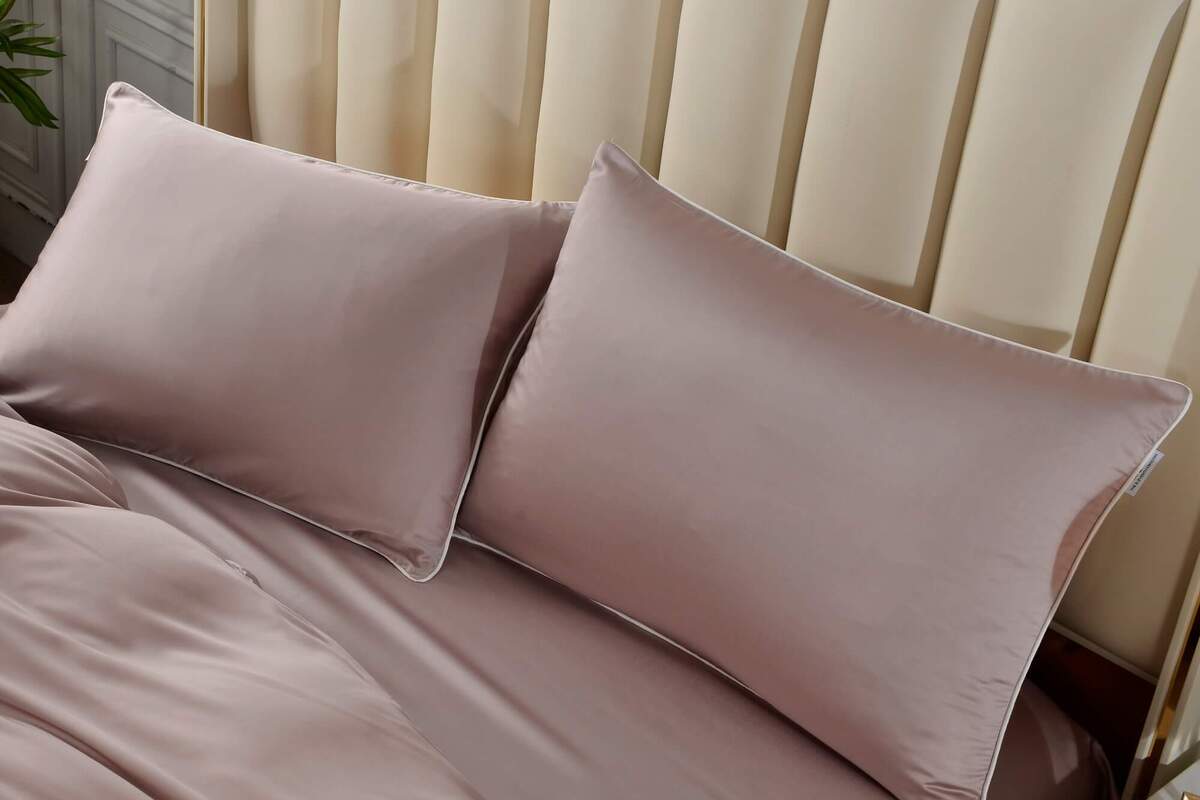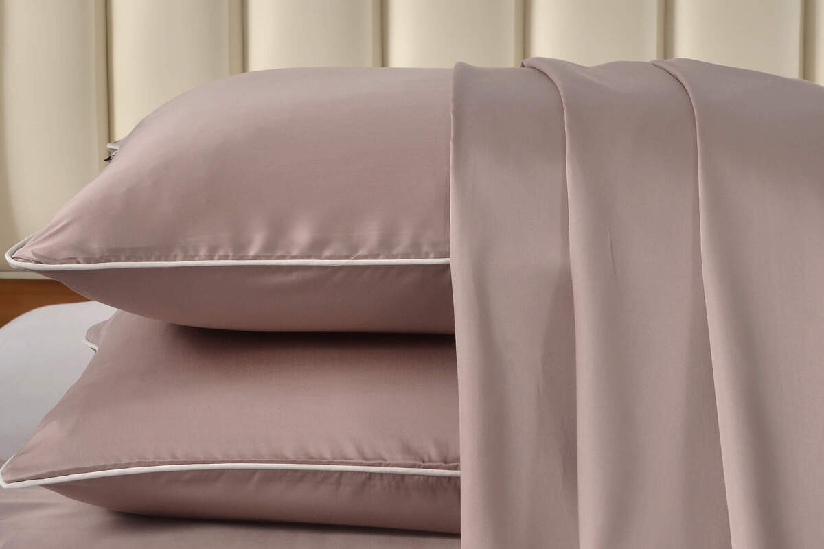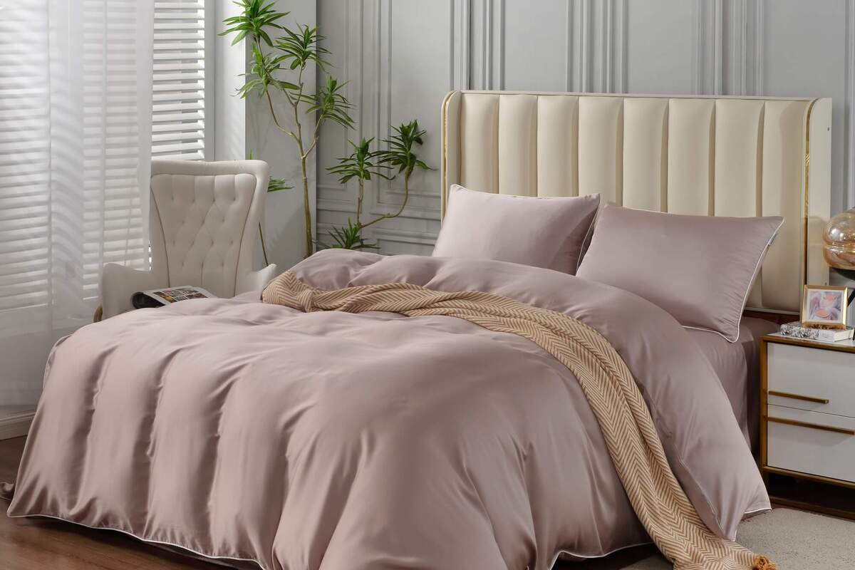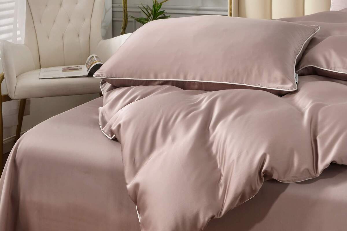 Для нашего фирменного постельного белья Elizabeth мы используем 100% тенсель (эвкалиптовое волокно) пряжи 60s, сатиновое плетение плотностью 300ТС. Комплект выполнен в однотонном дизайне с изящным белым кантом по краю пододеяльника и наволочек.